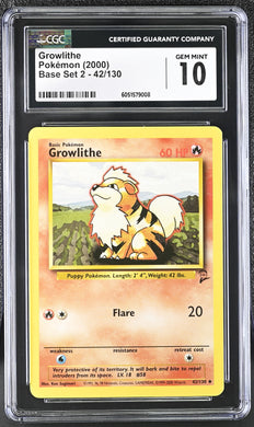 CGC GEM 10 Growlithe Base Set 2 (Graded Card)