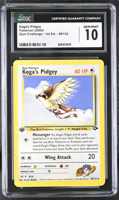 CGC GEM 10 Koga's Pidgey 1st Edition (Graded Card)