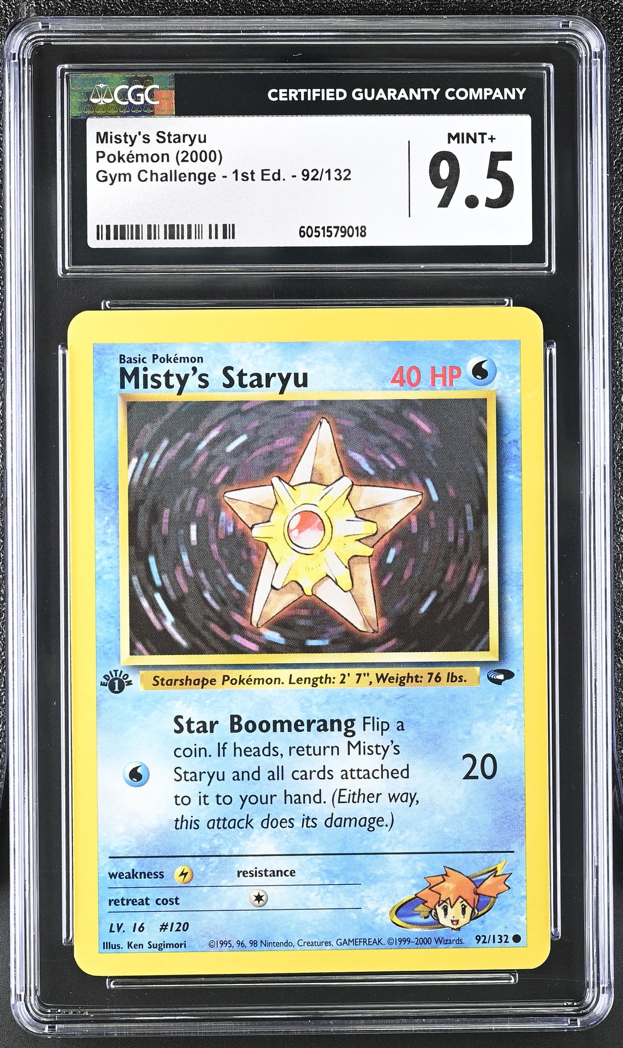 This listing is for a CGC 9.5 Misty's Staryu 1st Edition from 'Gym Challenge 1st Edition'.