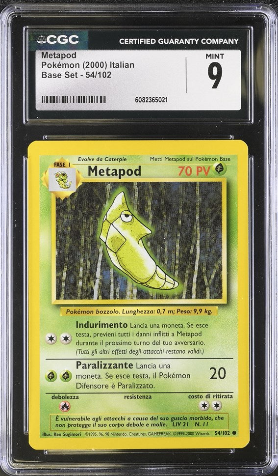 This listing is for a CGC 9.5 Italian Metapod Pokémon 2000 Italian Base Set - Unlimited 54/102.