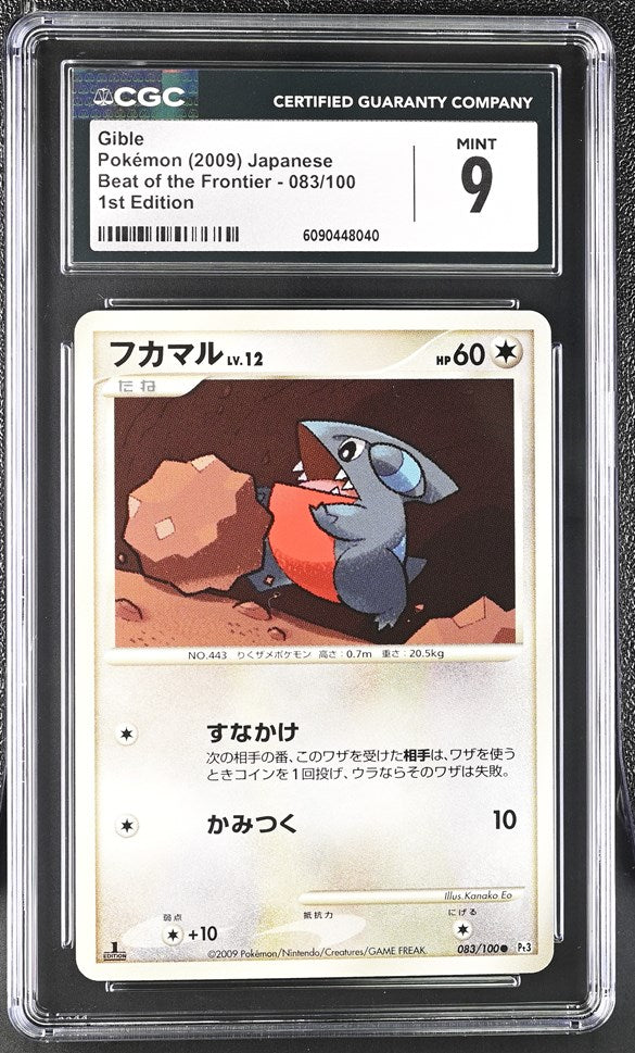 This listing is for a CGC 9 Gible Pokémon 2009 Japanese Beat of the Frontier - Pt3 083/100 1st Edition Common
