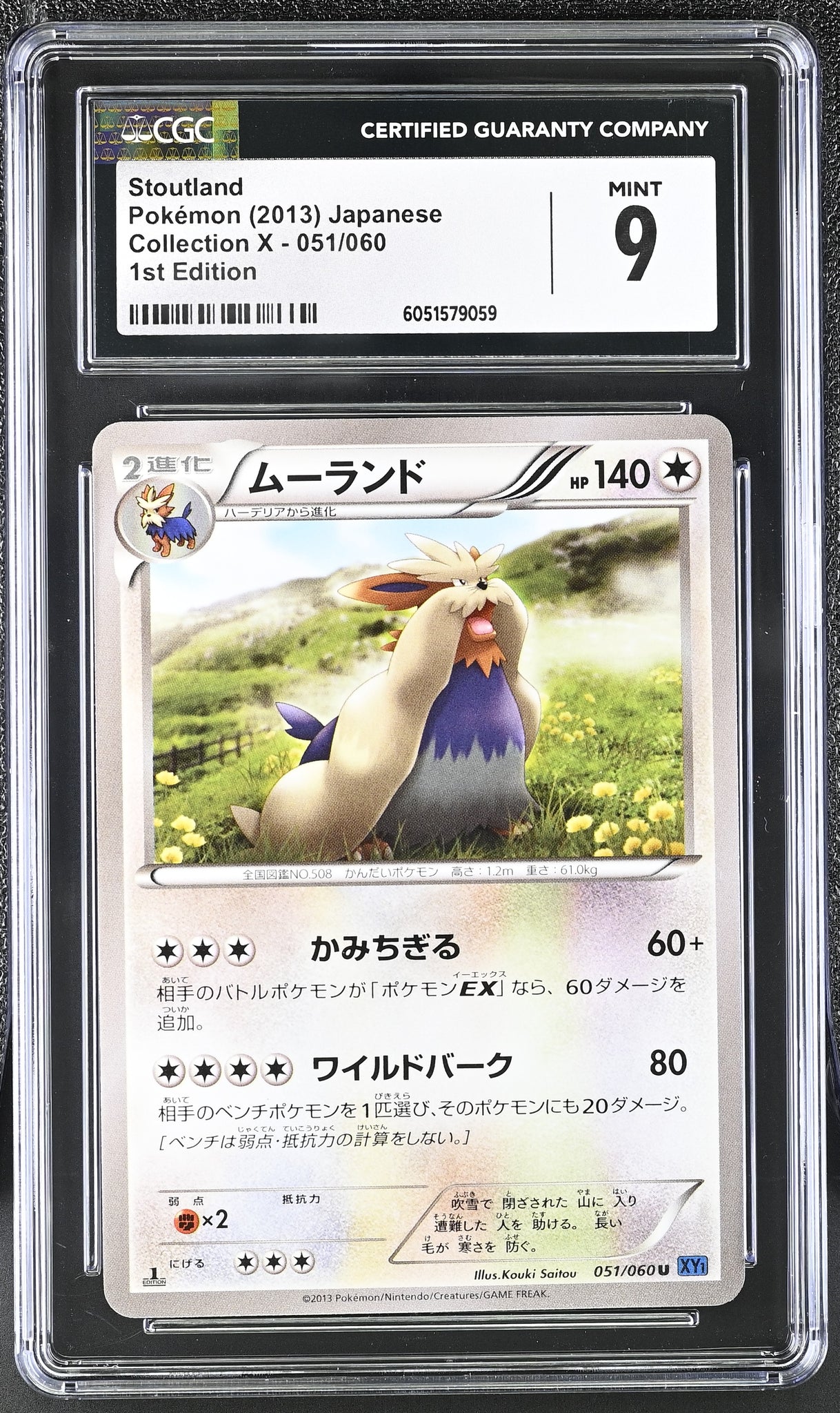 This listing is for a CGC 9 Japanese Stoutland Uncommon 1st Edition from 'Collection X'.