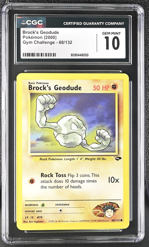 This listing is for a CGC GEM 10 Brock's Geodude Pokémon 2000 English Gym Challenge - Unlimited 68/132 Common