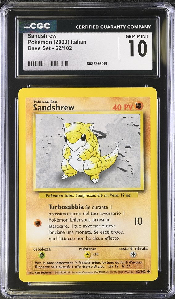 This listing is for a CGC GEM 10 Italian Sandshrew Pokémon 2000 Italian Base Set - Unlimited 62/102