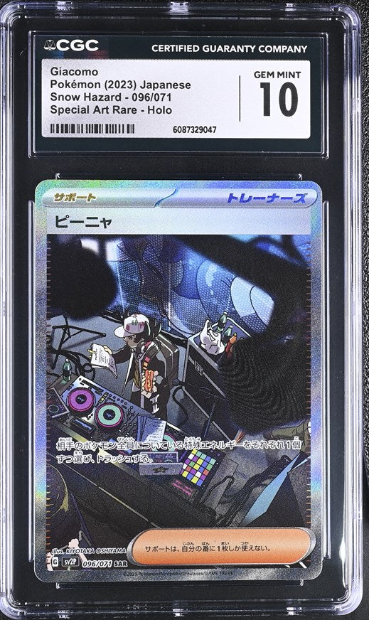 This listing is for a CGC GEM 10 Giacomo Pokémon 2023 Japanese Snow Hazard - sv2P 096/071 Special Art Rare Holo.