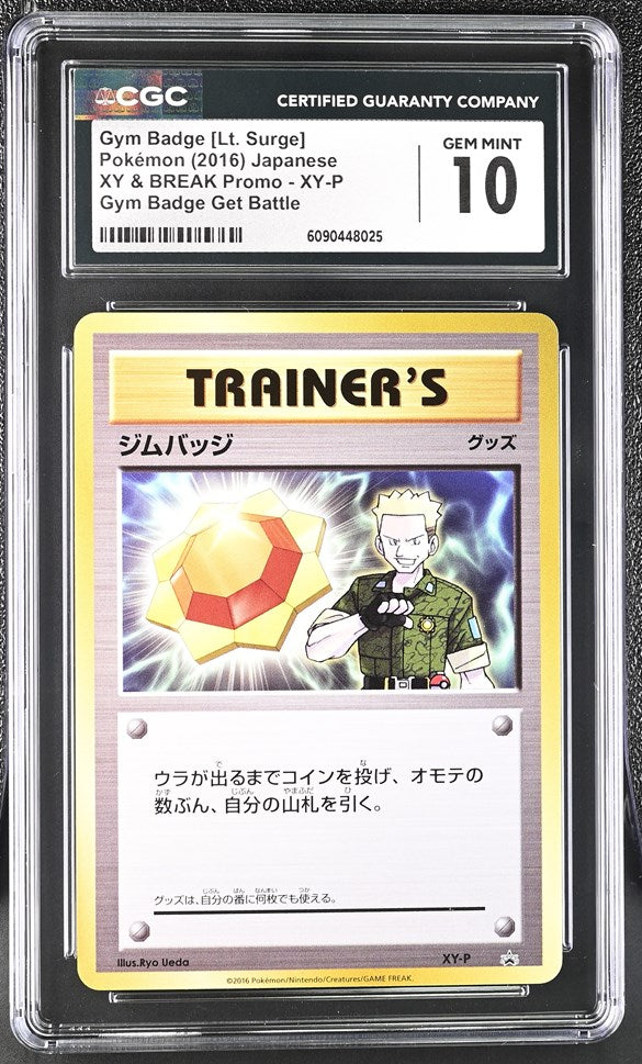 This listing is for a CGC GEM 10 Gym Badge [Lt. Surge] Pokémon 2016 Japanese XY & XY BREAK Promo XY-P Gym Badge Get Battle Promo