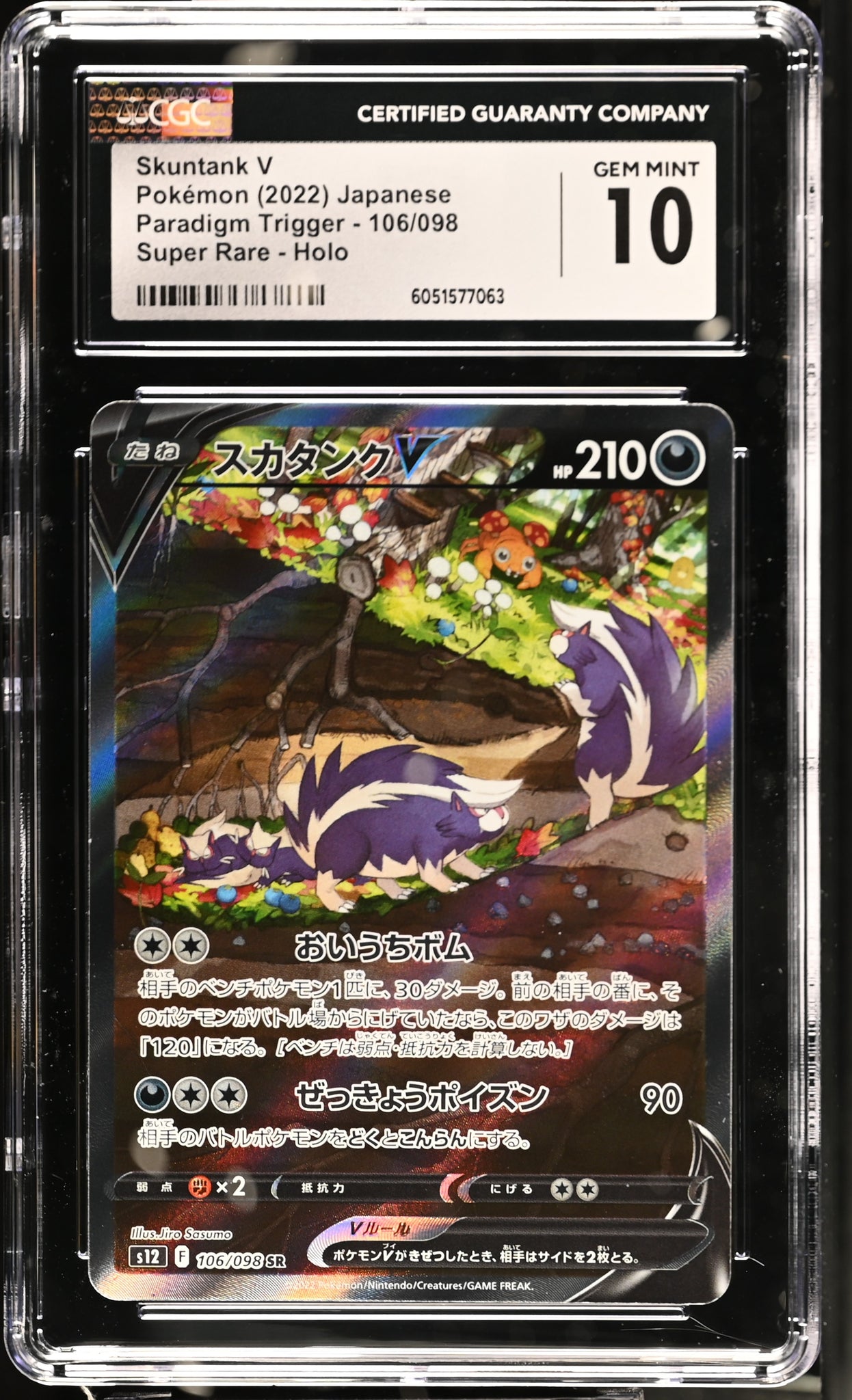 This listing is for a CGC GEM 10 Japanese Skuntank V Alt Art from 'Paradigm Trigger'.
