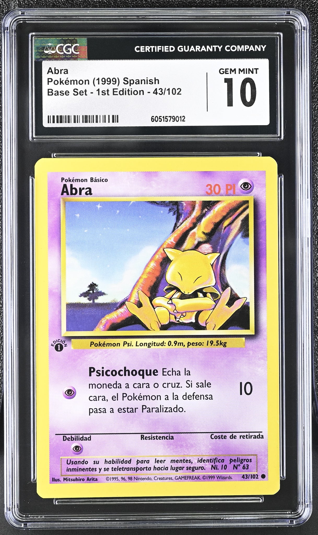 This listing is for a CGC GEM 10 SPANISH Abra Common 1st Edition from 'Base Set - 1st Edition'.