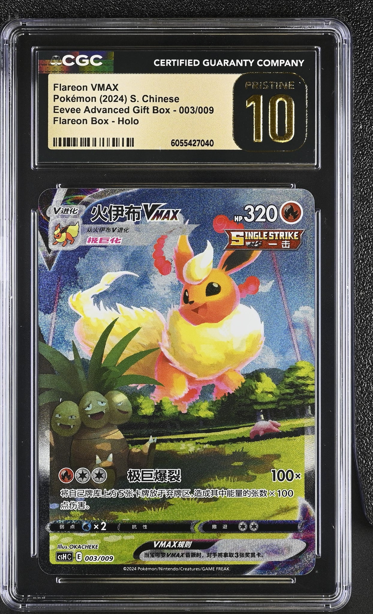 This listing is for a CGC PRISTINE 10 Simplified Chinese Flareon VMAX Alt Art Promo from 'Flareon Gift Box'.