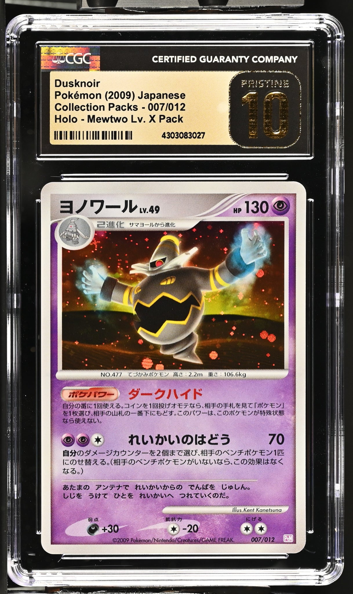 This listing is for a CGC PRISTINE 10 Japanese Dusknoir Holo from 'Mewtwo Lv. X Pack'.