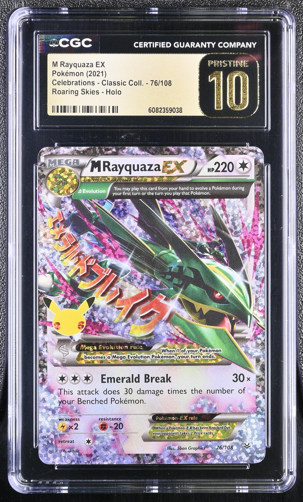 This listing is for a CGC PRISTINE 10 M Rayquaza EX Classic Collection Holo from Celebrations Classic Collection.