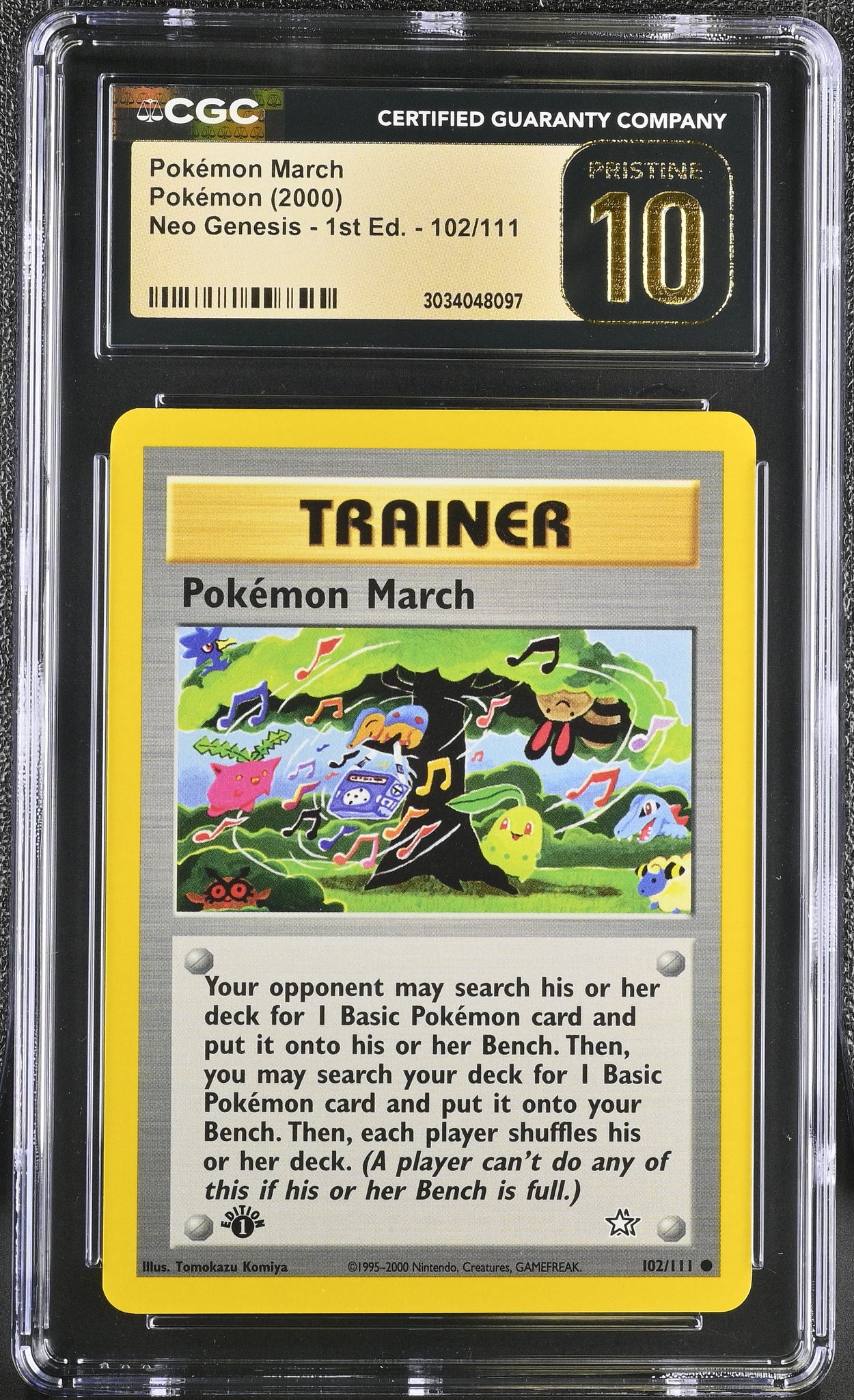 This listing is for a CGC PRISTINE 10 Pokemon March 1st Edition from Neo Genesis - 1st Edition.