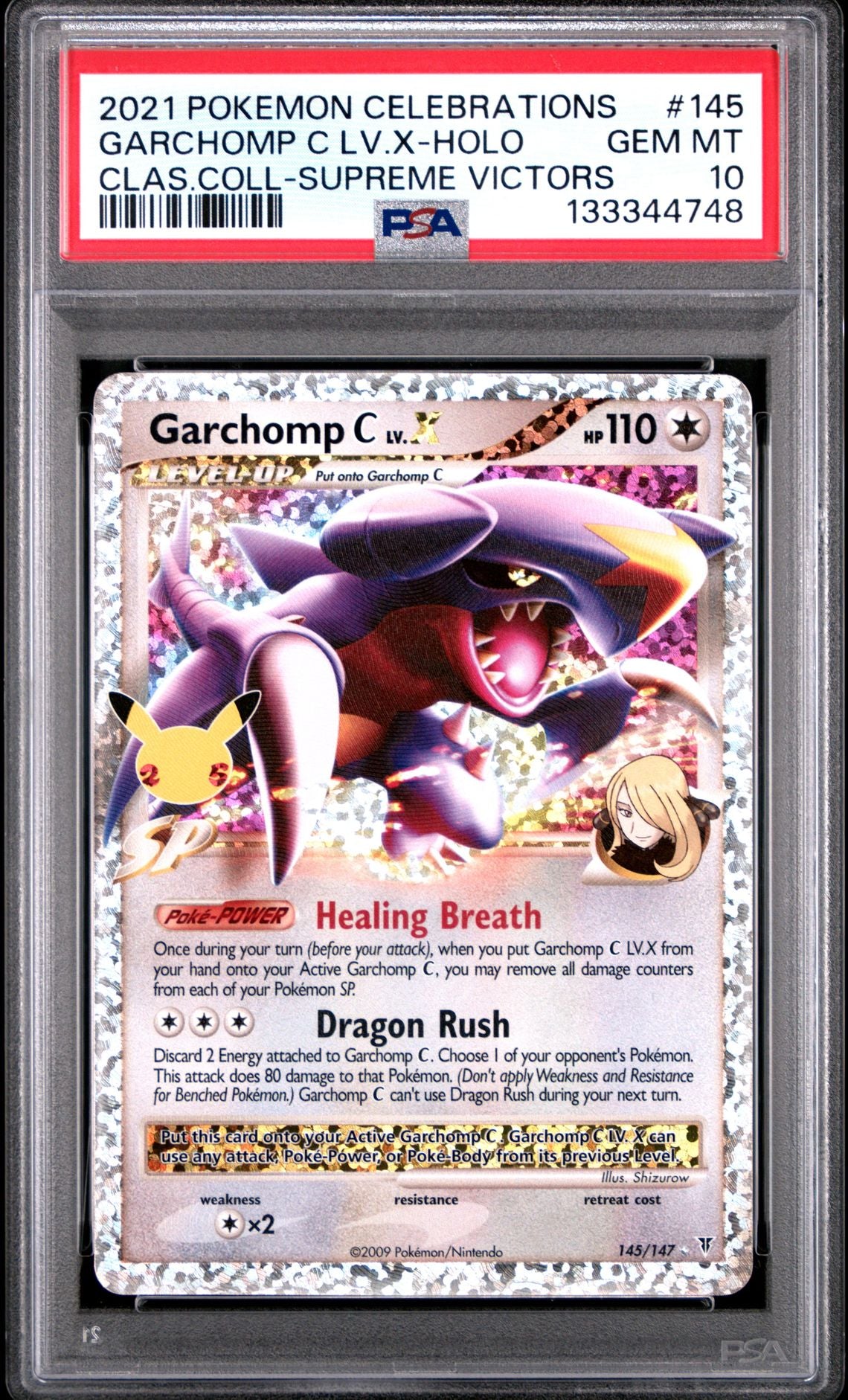 This listing is for a PSA 10 Garchomp C Lv. X Holo from 'Celebrations Classic Collection'.