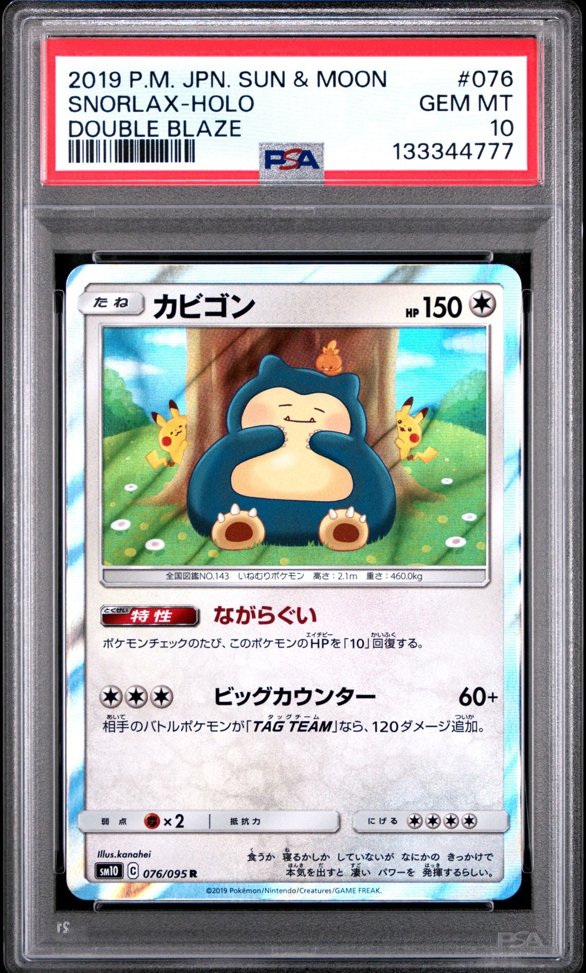This listing is for a PSA 10 Japanese Snorlax Holo from 'SM10 - Double Blaze'.