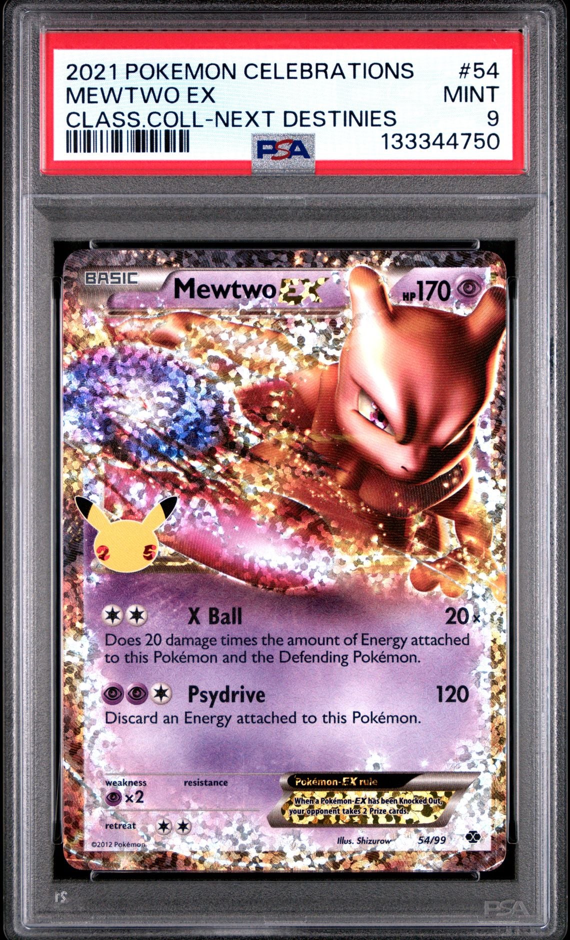 This listing is for a PSA 9 Mewtwo EX Holo from 'Celebrations Classic Collection'.