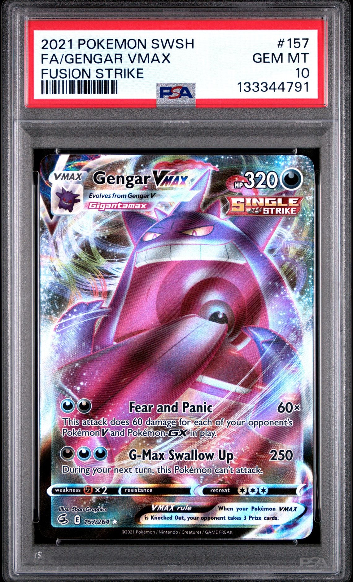 This listing is for a PSA 10 Gengar VMAX from 'Fusion Strike'.